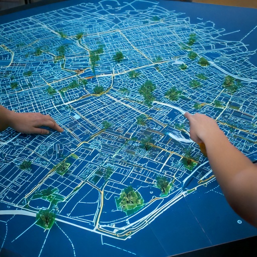 まちの公民館にある大きな地図は、積み木のように動かせるようになっている。街路樹を動かすとプロジェクションされている路面温度が下がり、木陰のベンチを移動するような提案がされる。ボタンを押せば自動で提案された配置へと地図の中のオブジェクトが動いていく。触る度に街の可能性は広がり、自分の未来の暮らしを想像ができる。お気に入りの街の配置ができたから保存して市役所へ送信するのもいいでしょう。
