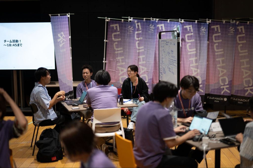 私がFUJI HACKに参加したときに感じたのは、参加者の没入感を大事にされていることです。参加者のチームごとにTシャツの色を分けていたりしますよね。イベントのチェックインがアミューズメントパークに入っていく入口のような感覚があって、参加者を一気に巻き込んでいく仕掛けだと思いました。