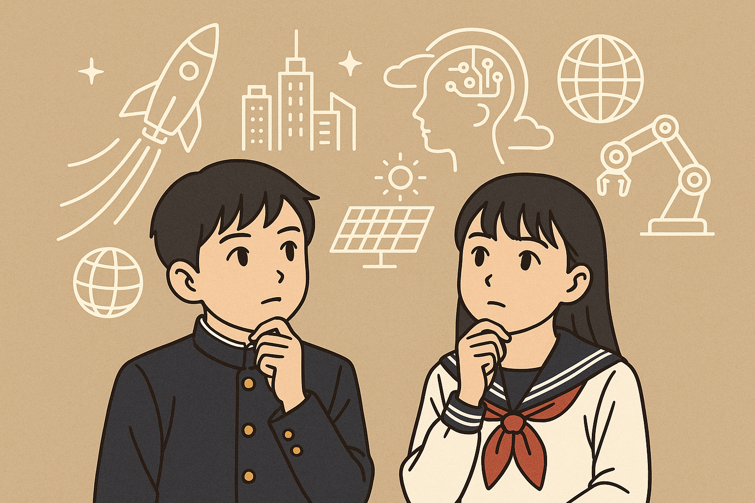 大切なのは、「正解はない」ということです。自由に、大胆に、いろいろな未来を想像してみましょう。そして、考えたことをぜひ友達や家族にも話してみてください。きっと、面白いアイデアがもっとたくさん生まれるはずです。
